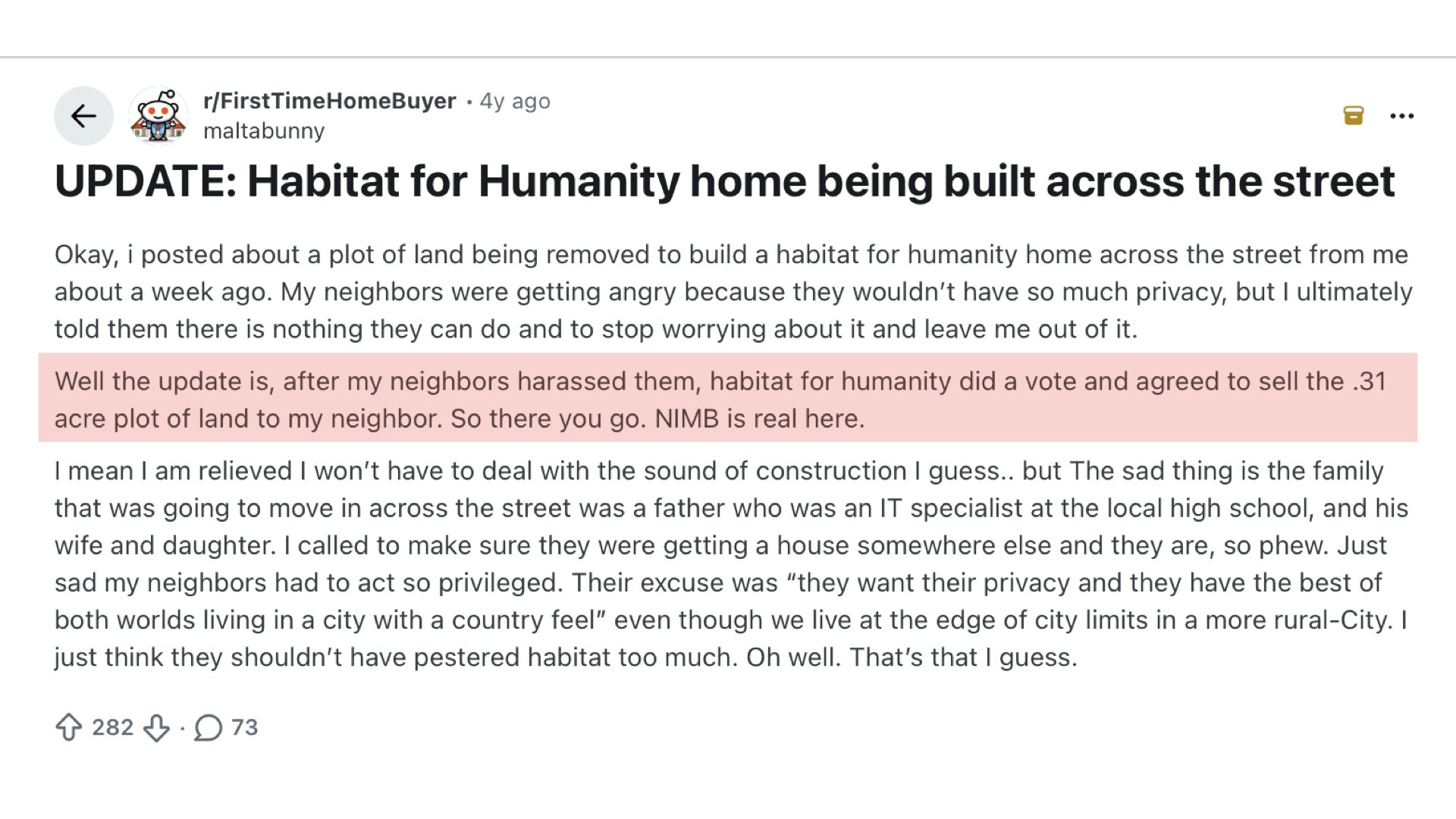 People often oppose HFH building homes on empty lots because they fear the people moving in will be ‘troubled’ or ‘dangerous.’ That’s proven false - the bigger threat to neighborhoods is vacancy, inviting criminal activity, drugs, guns and worse. HFH shows that the most effective way to clean up a street is to occupy it.