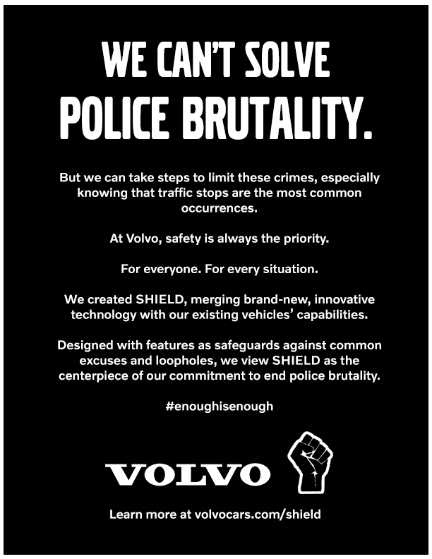 The shield that police officers wear are meant to symbolize protection, yet police brutality remains a critical issue in the United States. Volvo introduces innovative technology that helps limit such cases.