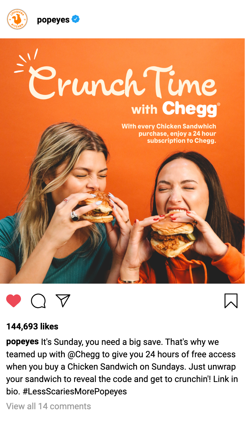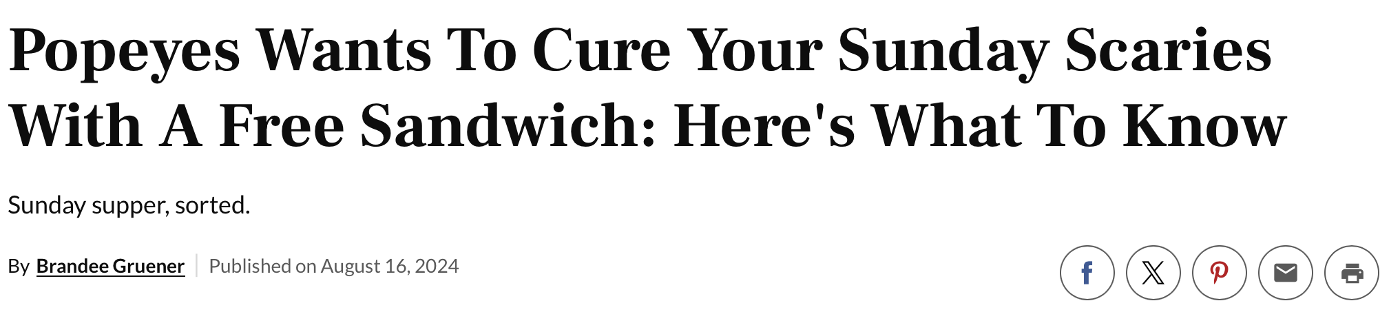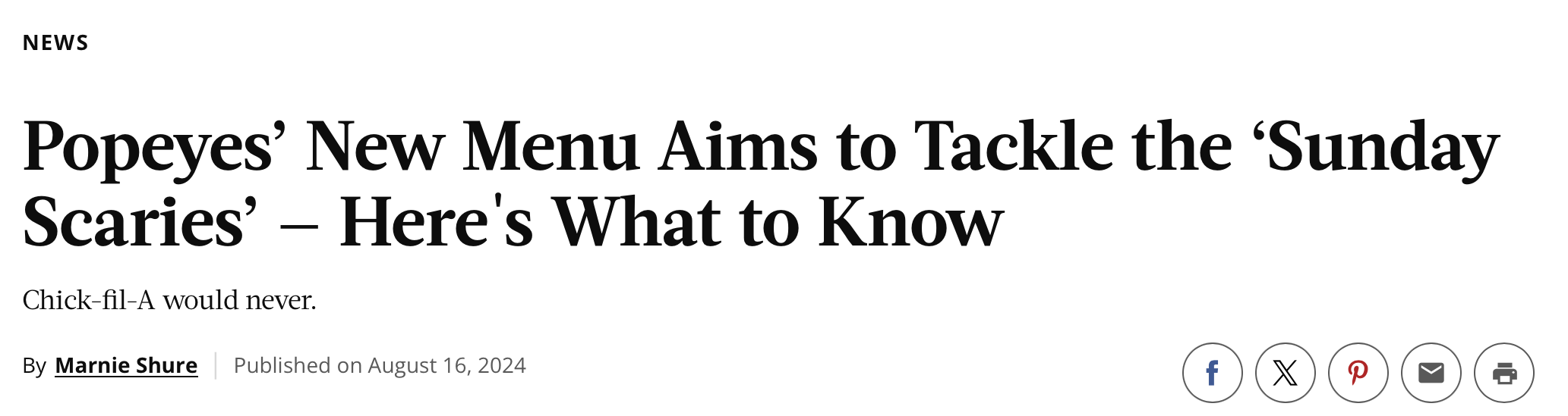On Sunday, Gen Z is hungover, hangry, regretful, stressed, tired…everything. They need more than comfort. They need a hero. With a certain fast-food chicken chain closed on Sunday, the Popeyes Chicken Sandwich is The Hero Sunday Needed.