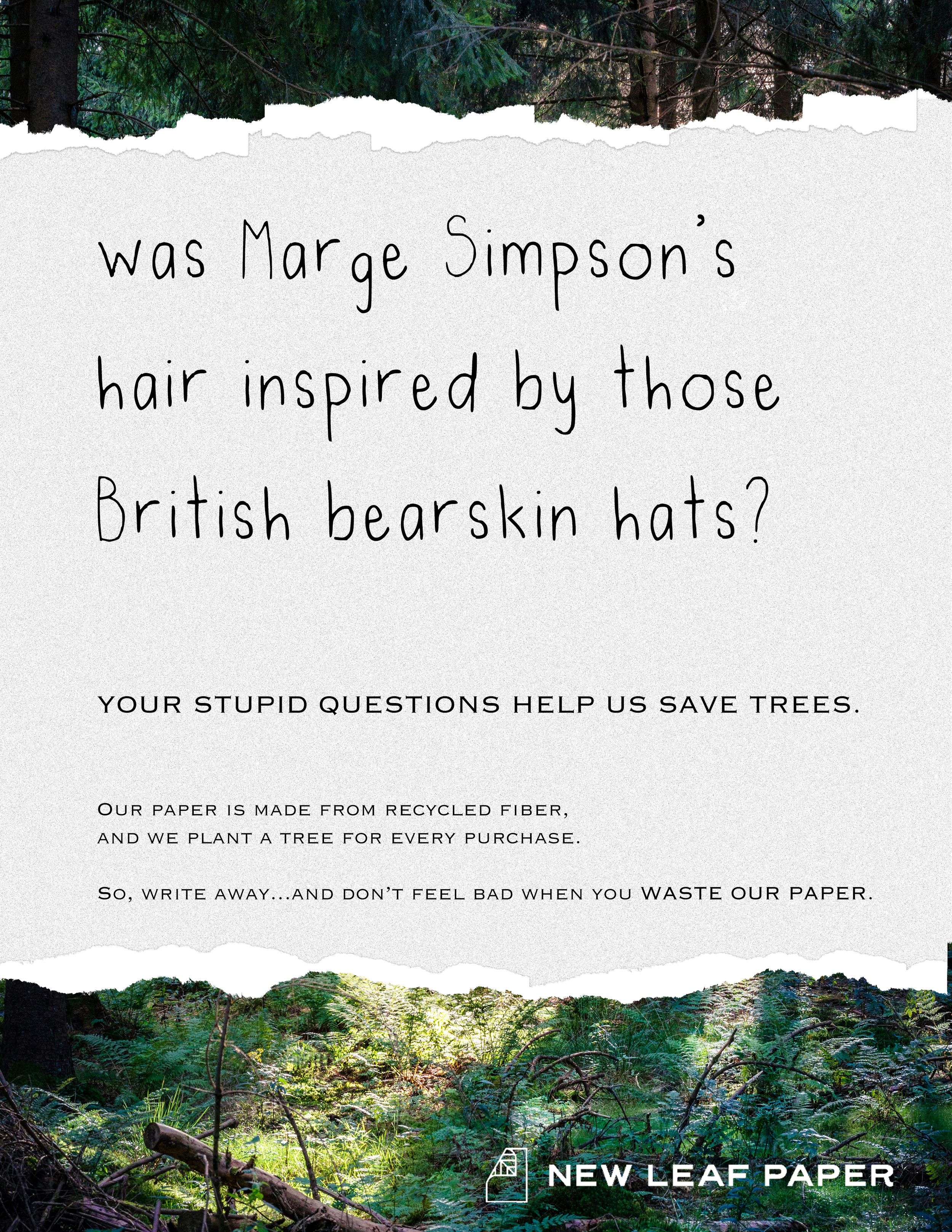 Pen to paper is the proven, better way to boost memory and learning. That leaves environmentally-conscious writers - casual and professional - at a crossroads. New Leaf Paper makes eco-friendly products and plants a tree for every purchase. So, write away…stupid ideas encouraged.